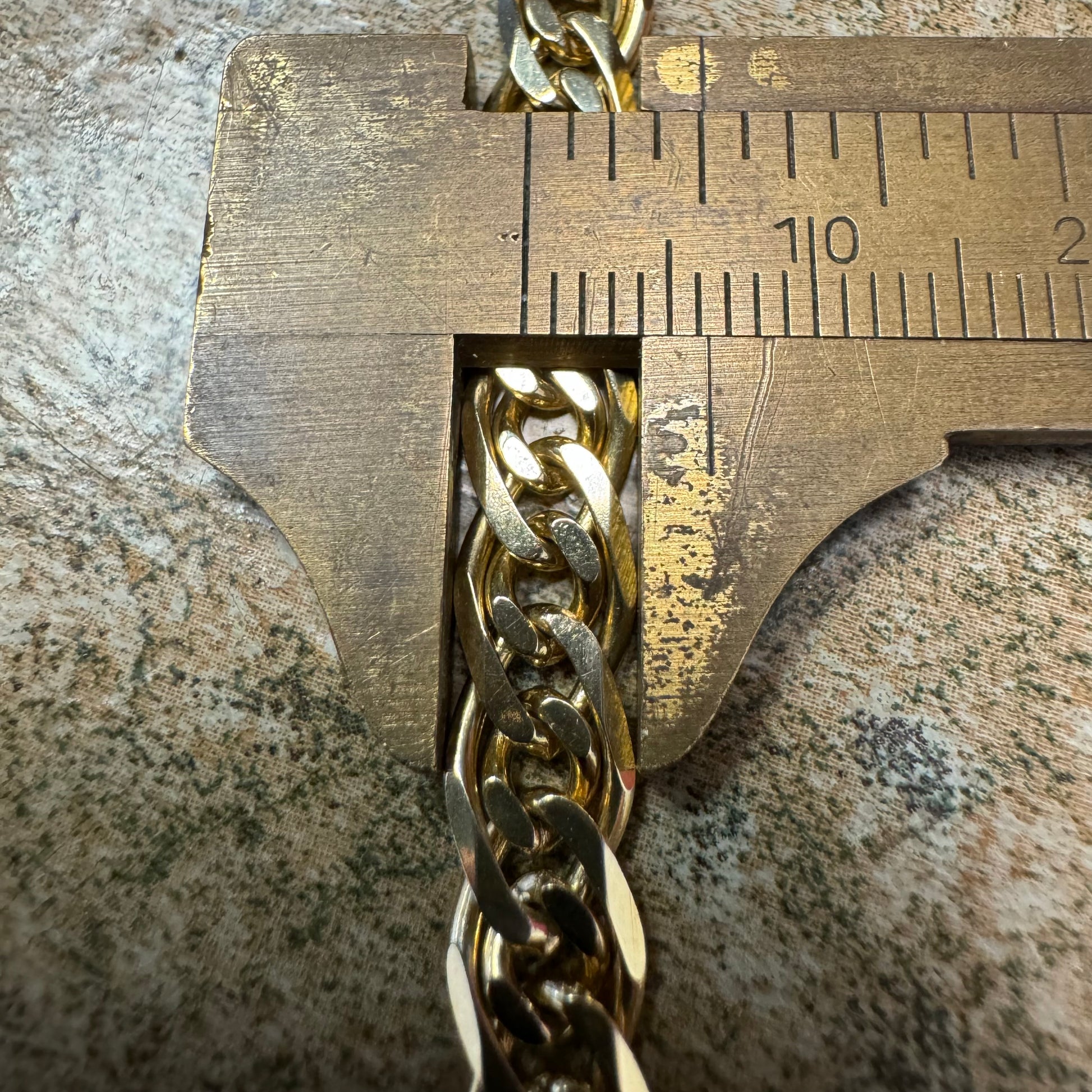 This chain takes the cake in the cool department. You will hardly see anyone no matter where you’re at in this world with this style link chain. For all the years I’ve been doing this I have never found one in gold and only ever found it a few times in silver. Meticulously crafted out of solid 14k yellow Italian gold sometime around the 1990’s is this double Cuban curb link necklace. With a sharp contrasted “knife edged” appearance on both link styles it gives off shimmer and shine at all angles that light or the sun will hit it while in movement. Made from an elongated Cuban curb link within a smaller classic style Cuban curb link hybrid all formed and weaved into one chain this is a heavyweight piece that’s all solid with a high mirror polished glow. Measuring 20” in length and 6.25mm thick and weighing a heavy 33.23g this chain will stand the test of time with its heavy duty terminal ends and bubble but style extra secure lobster clasp.