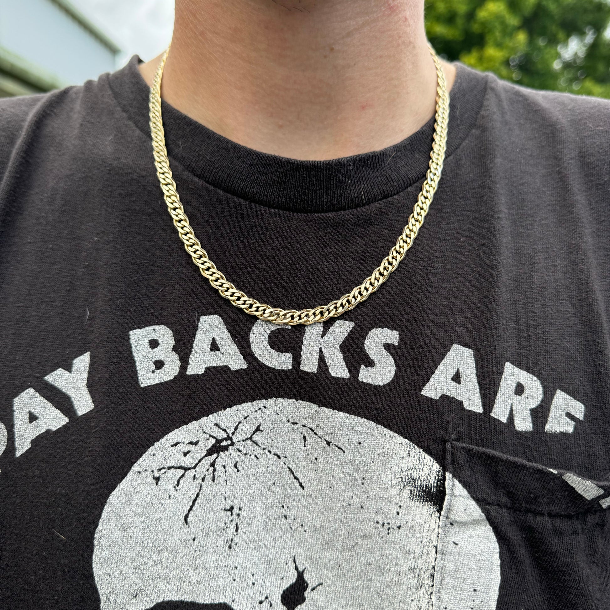 Vintage Solid 14k Yellow Gold Old School Knife-Edged Double Cuban Curb Link Necklace (20”)