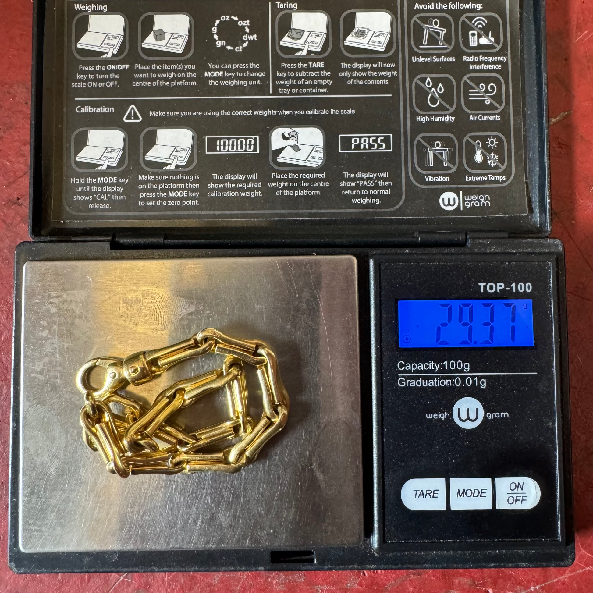 Very high end italian designer made vibrant solid 14k yellow gold unique link bracelet by “La Pepite”. The term “La Pepite” is actually French meaning; A lump, especially of gold. This bracelet was hand made sometime around the 1990’s with the utmost attention to detail all the way down to the pinion attached lobster clasp that has a slight back and forth swivel moving to every turn of your wrist. 8” in length by 6mm thick and a heavy 29.4g this is going to be your favorite bracelet and one to pass down from generations on.