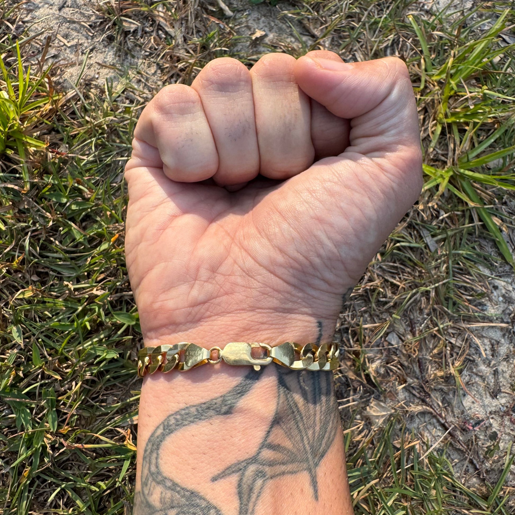Vintage Solid 14k Yellow Italian Gold Beveled Edge Cuban Link Bracelet (8.5”)