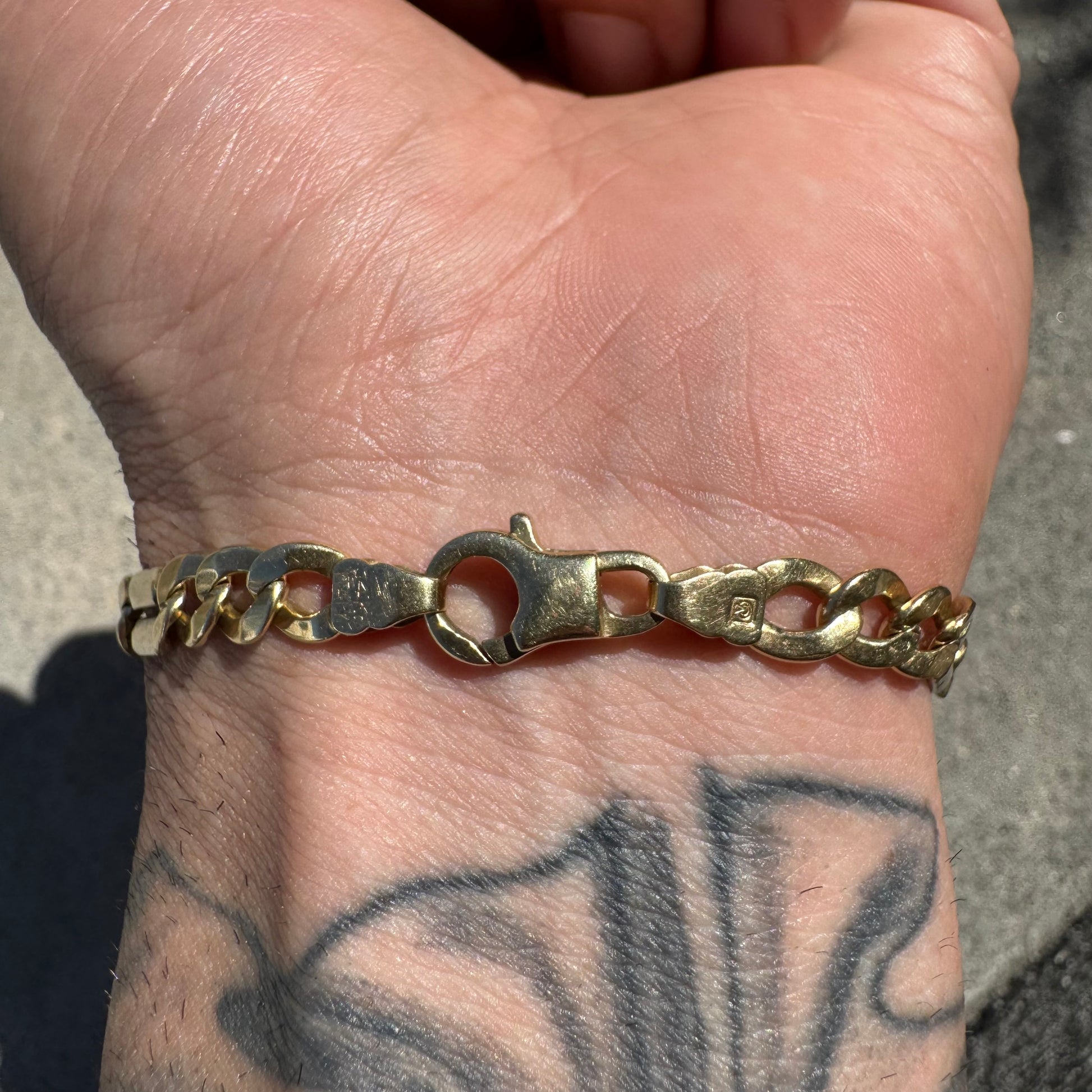 Vintage Solid 14k Yellow Italian Gold Tony Soprano Razorblade Curb Link Bracelet (8.25”)