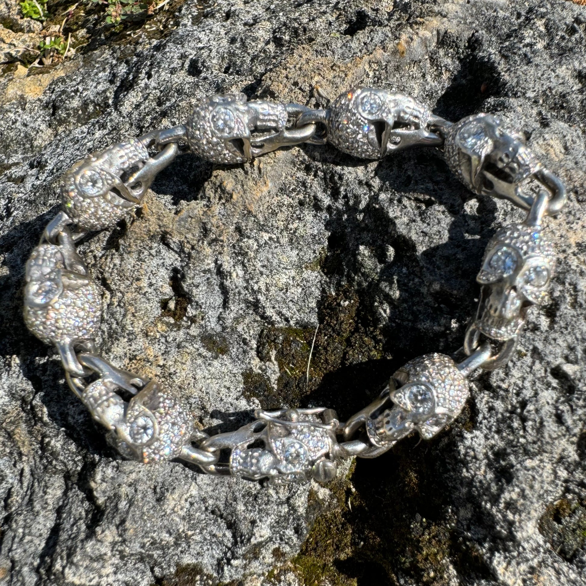 Vintage Solid 18k White Gold 21 CTW Natural Diamond Custom Skull Bracelet (7.25”)