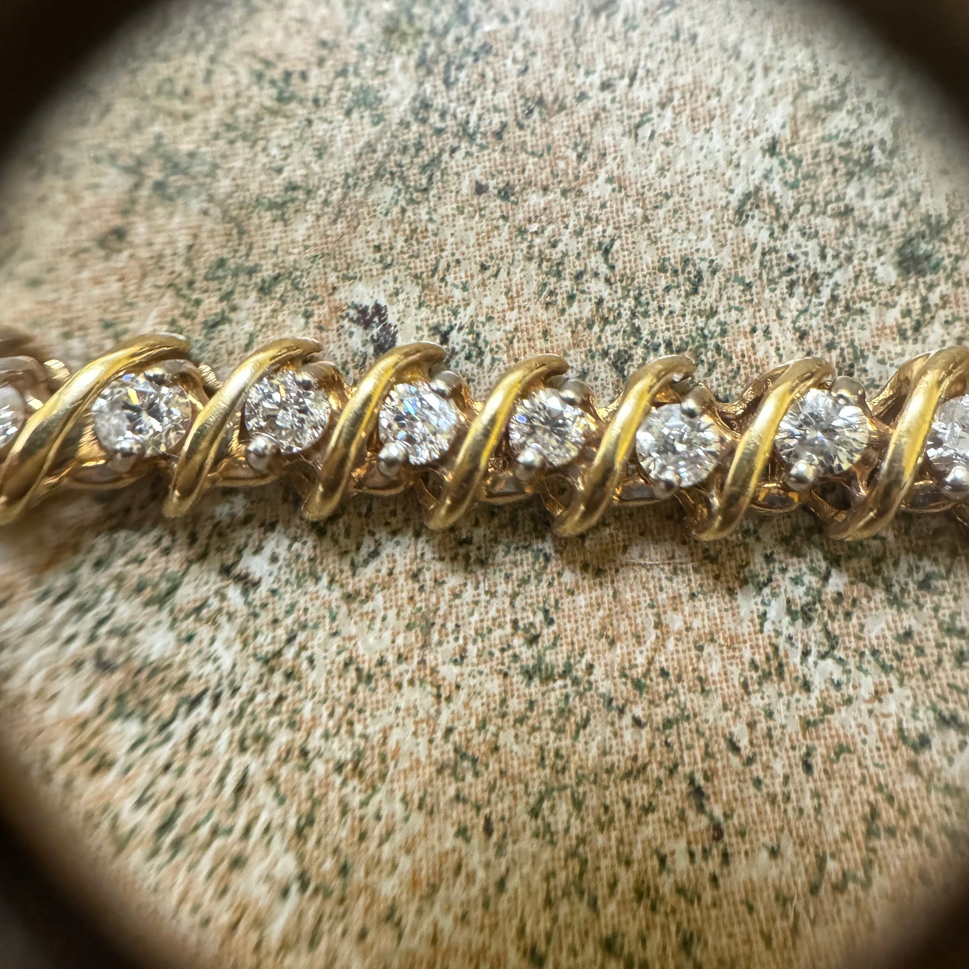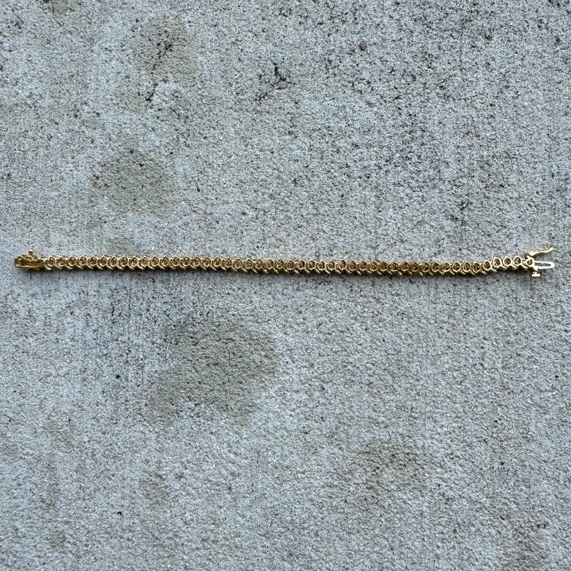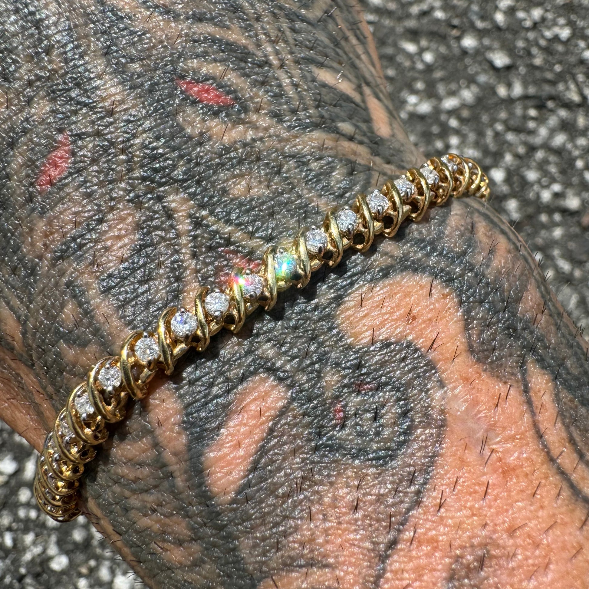 Vintage Solid 18k Yellow Gold 2.0ctw Natural Diamond Tennis Bracelet (7.25”)