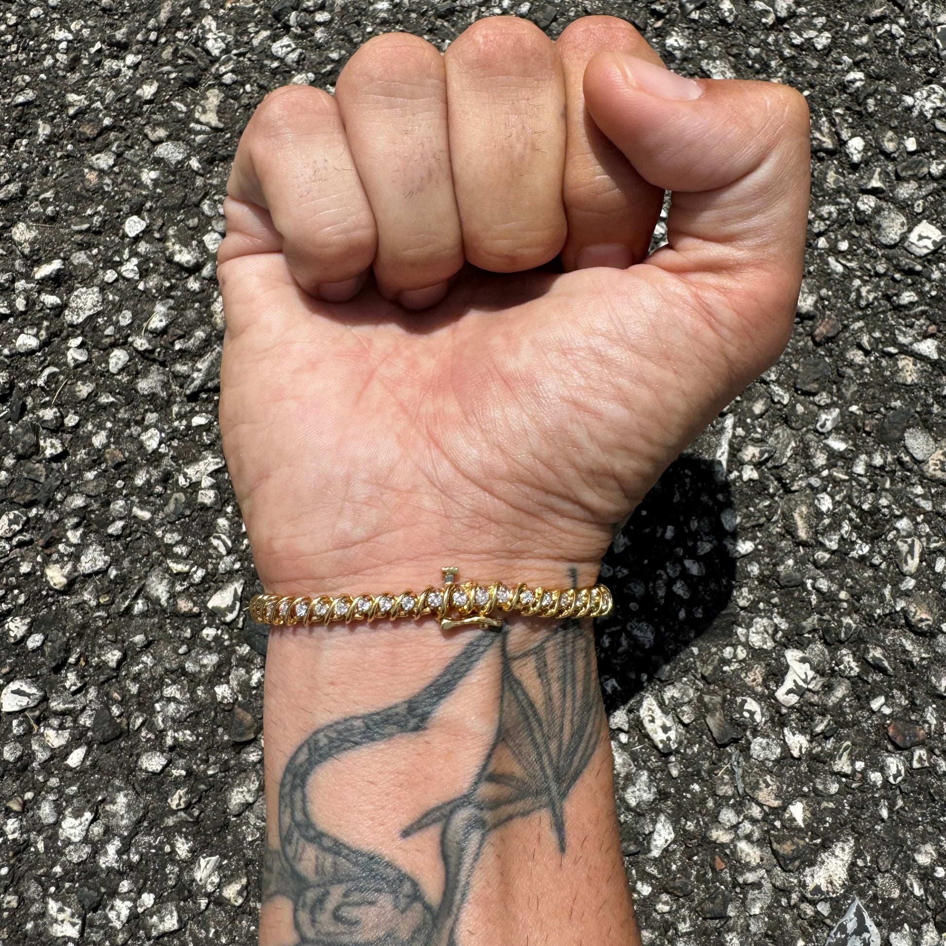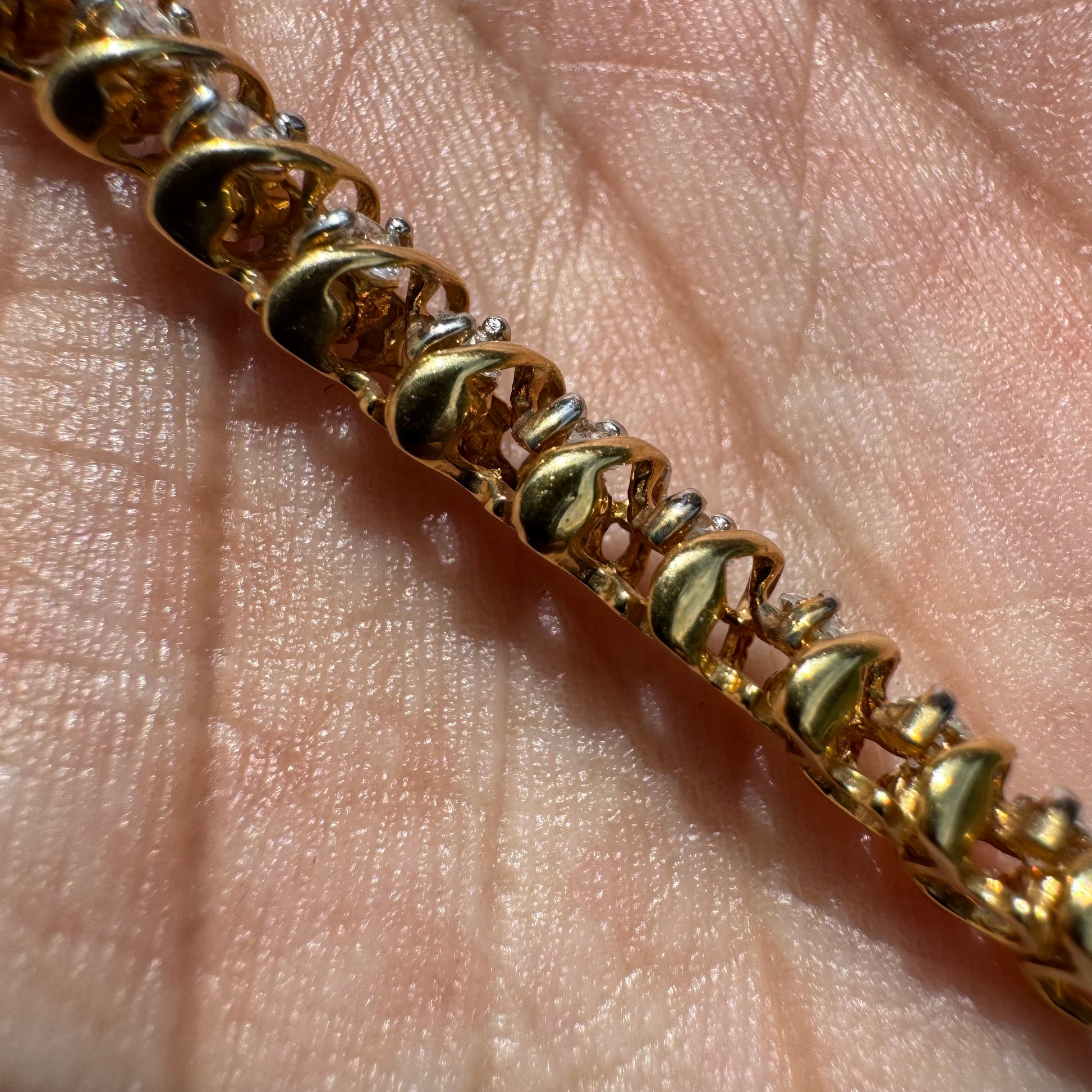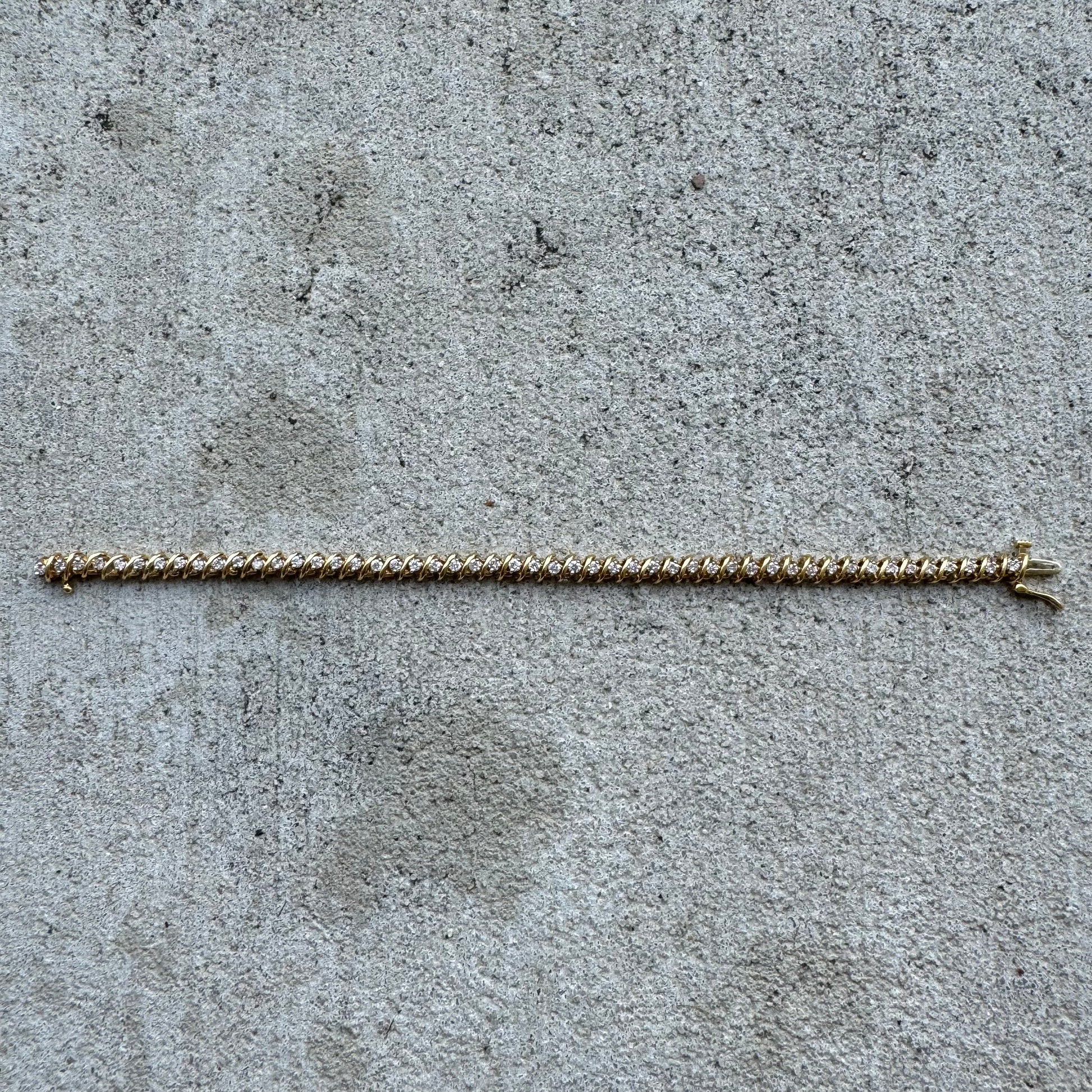 Vintage Solid 18k Yellow Gold 2.0ctw Natural Diamond Tennis Bracelet (7.25”)