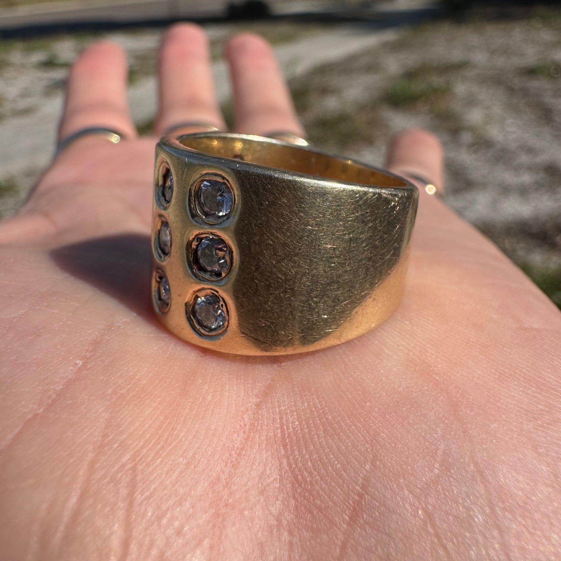 Vintage Solid Heavyweight 18k Yellow Gold 1.5ctw Natural Diamond Chunky Cigar Band (10.75-11)