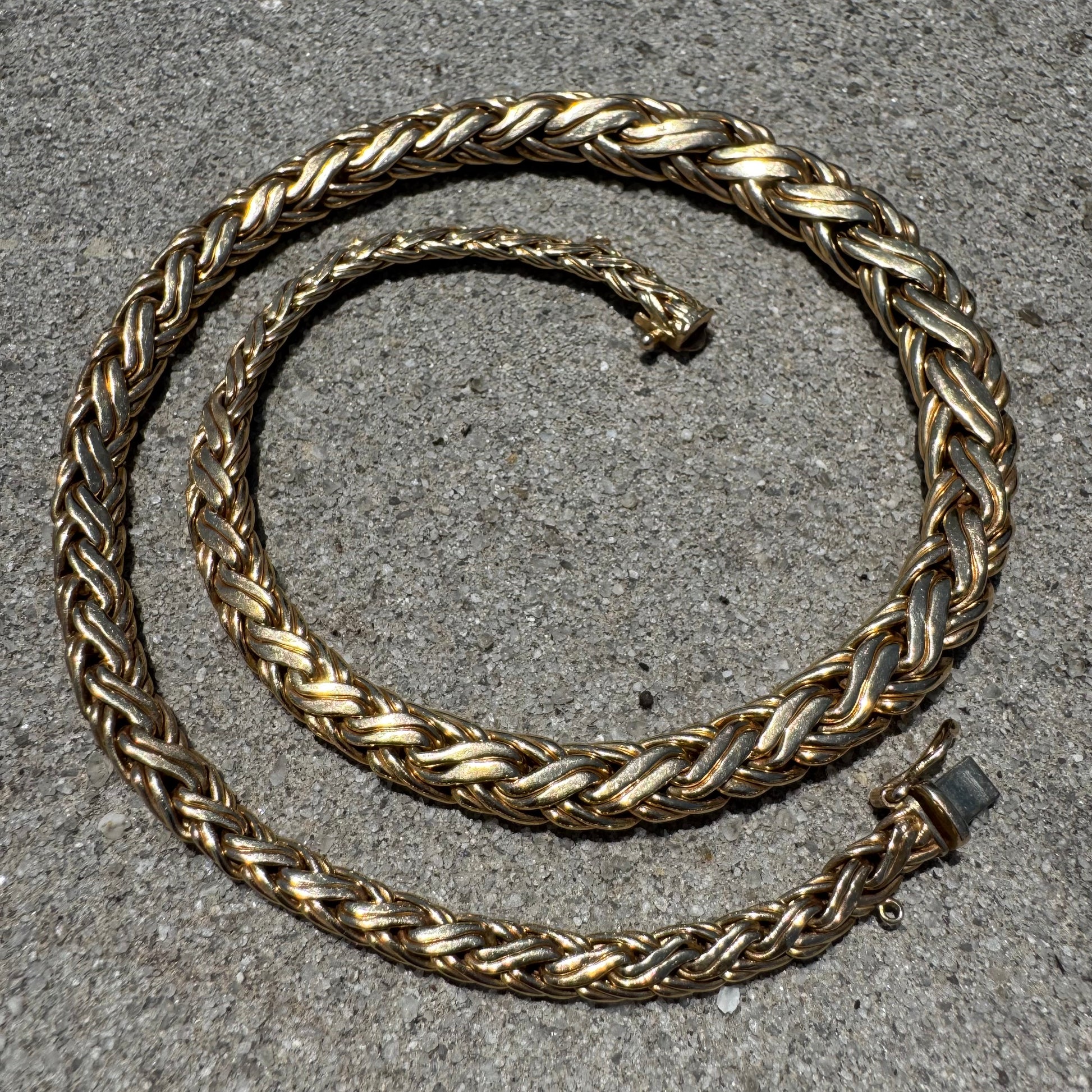 Vintage Tiffany & Co. 14k Yellow Gold Tapered Weaved Byzantine Link Necklace (16.25”)