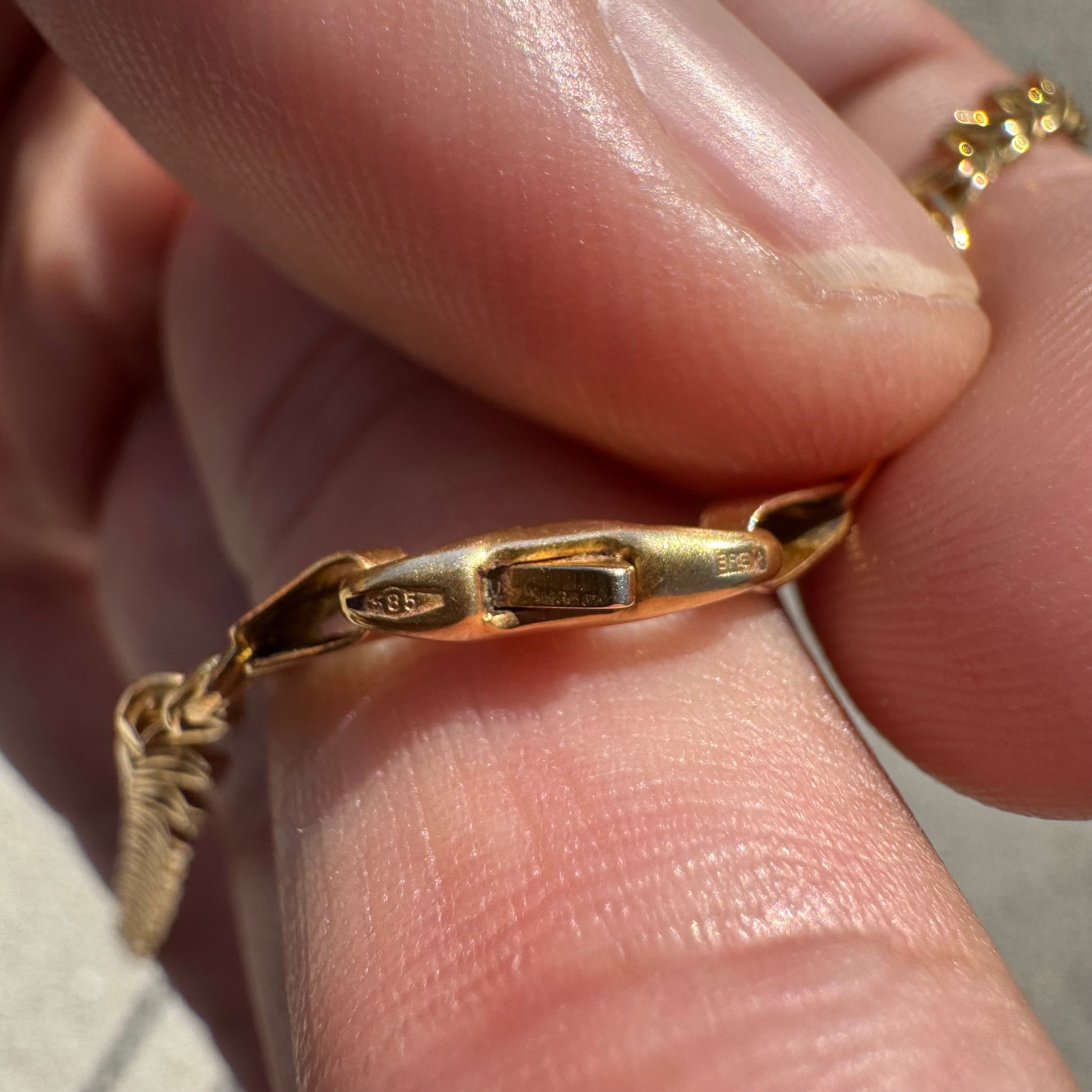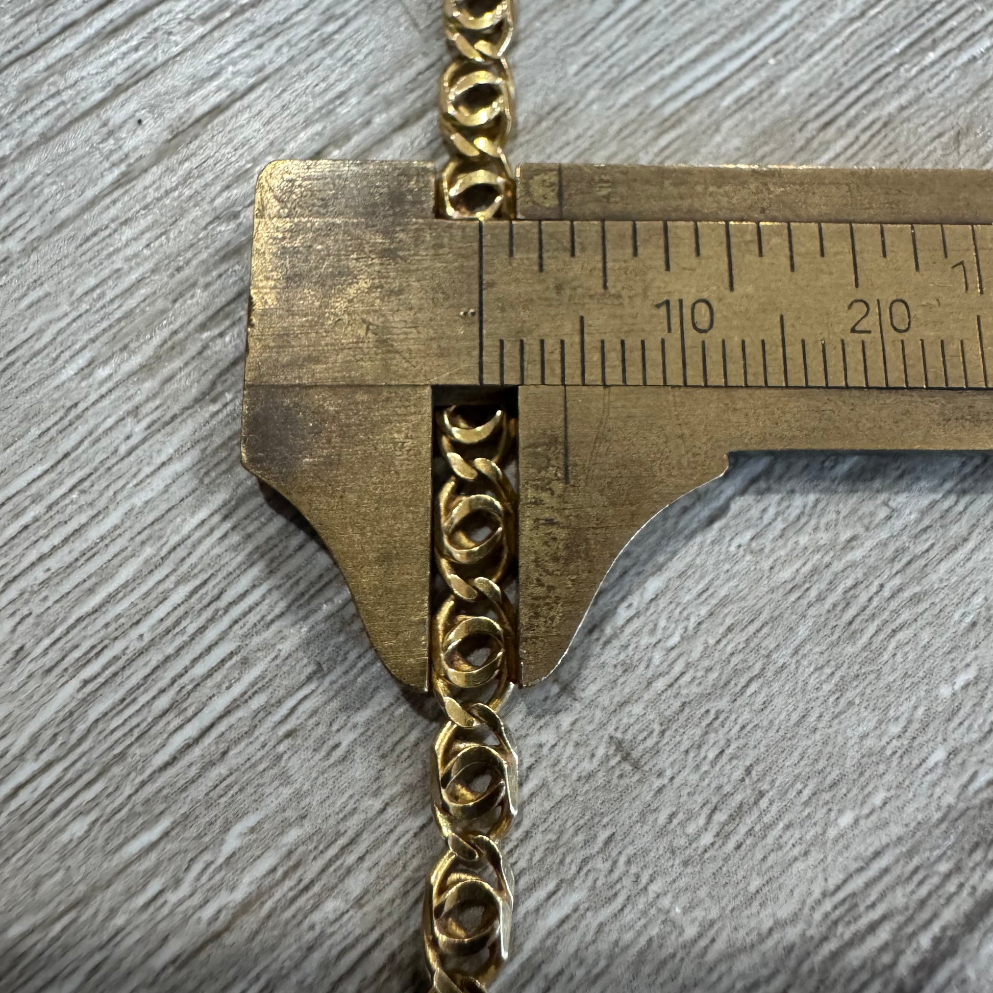 Crafted with perfection by UnoAErre, one of the most well known and sought after Goldmsiths in all of Italy. Quality, looks, weight, elegant, yet rugged style this chain has everything you want going for it. A vibrant glowing solid 14k mirror polished yellow gold, made in Italy sometime around the 1980’s, weighing in at a hefty 16.9g and measuring at 24.5” in wearable length by 4mm in width. This is called a Tigers Eye Chain, the name just sounds tough and it’s looks go right with the name but it’s better known to me as a “Chanel Link” for its double C look after the Parisian fashion house. This is serious strength that will fit any style no matter who you are or what look you’re going for. The deep cuts that carve out the center accentuate a somewhat 3D look and help give the necklace that paparazzi flash of sparkle whether outside in the sunlight or inside in a dimly lit area.